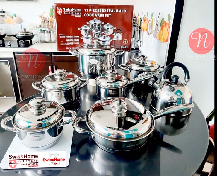 El Juego de ollas Swisshome, es fabricadas en acero inoxidable quirúrgico Premium, grado 316L muy utilizado en la industria alimenticia, cervecera, farmacéutica, implementos domésticos, y por supuesto en la cocina.